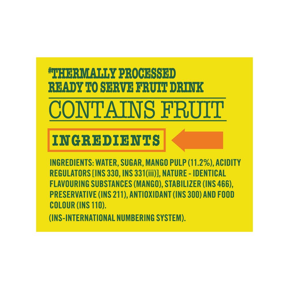 Liquid Contents Description Mango flavored, non-carbonated drink made from fresh mango pulp.