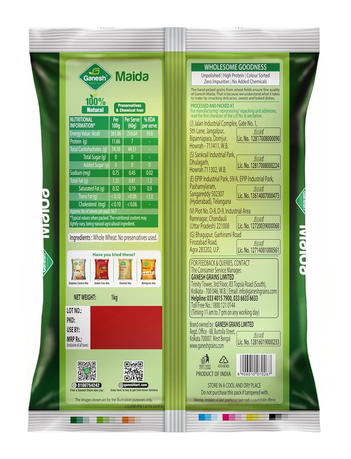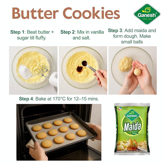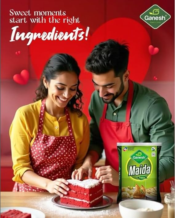 Ganesh premium maida 1kg (pack of 2) fresh organic 100% natural whole wheat maida flour no preservatives