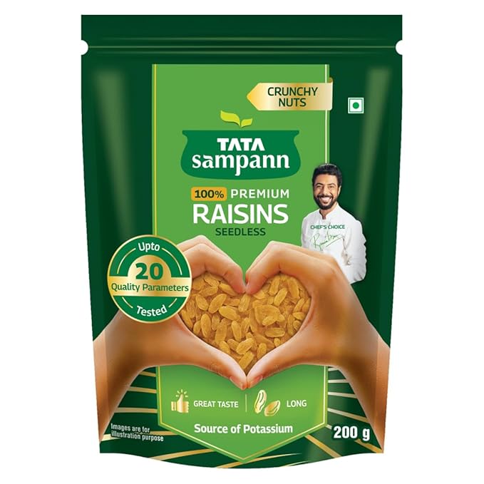 • 100% Pure Premium Raisins: Bring home the choicest in quality with Tata Sampann 100% Pure Premium Raisins
