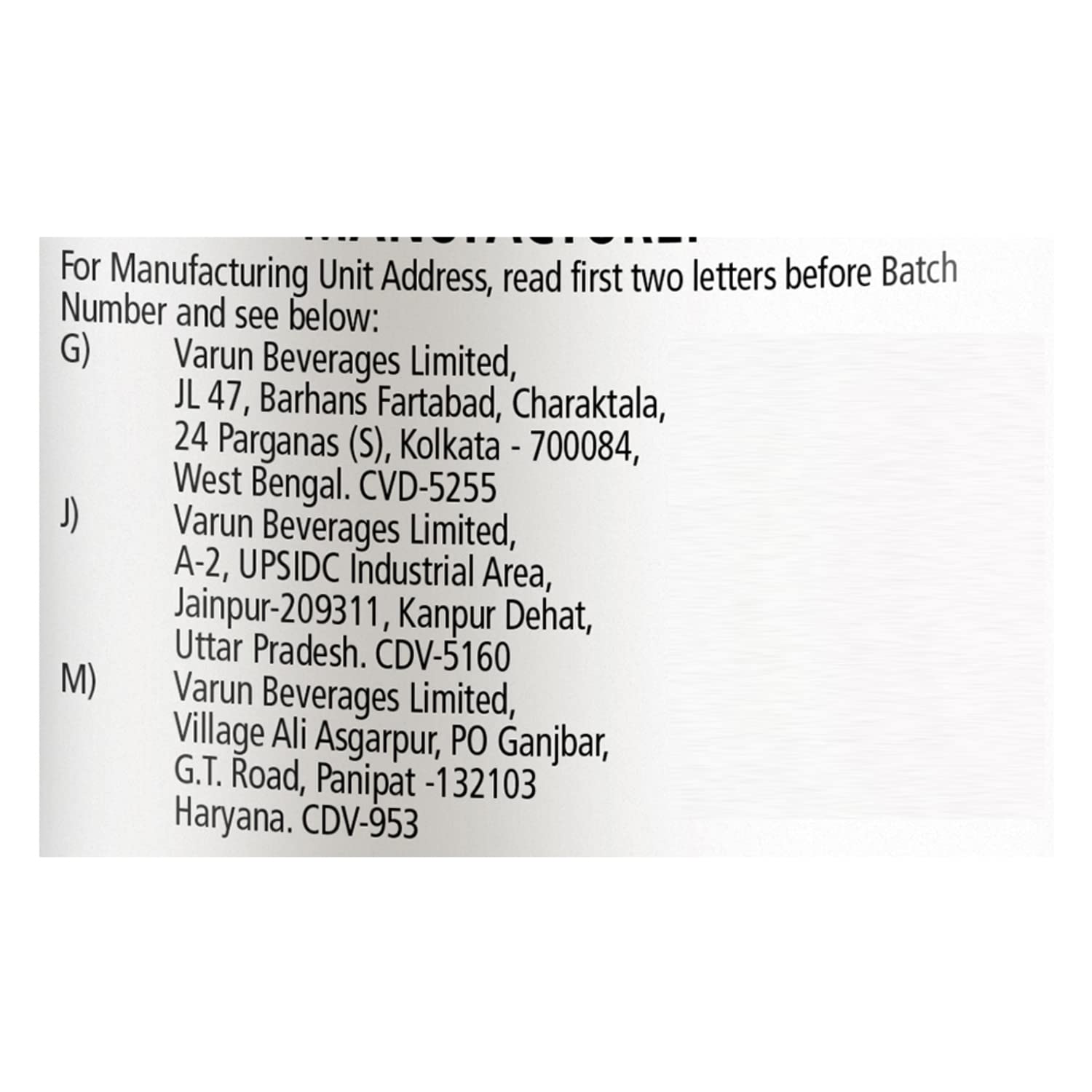 Manufacturer Contact Information Varun Beverages Limited Wise Park, Industrial Development Area, Kanjikode East,Palakkad- 678621, Kerala