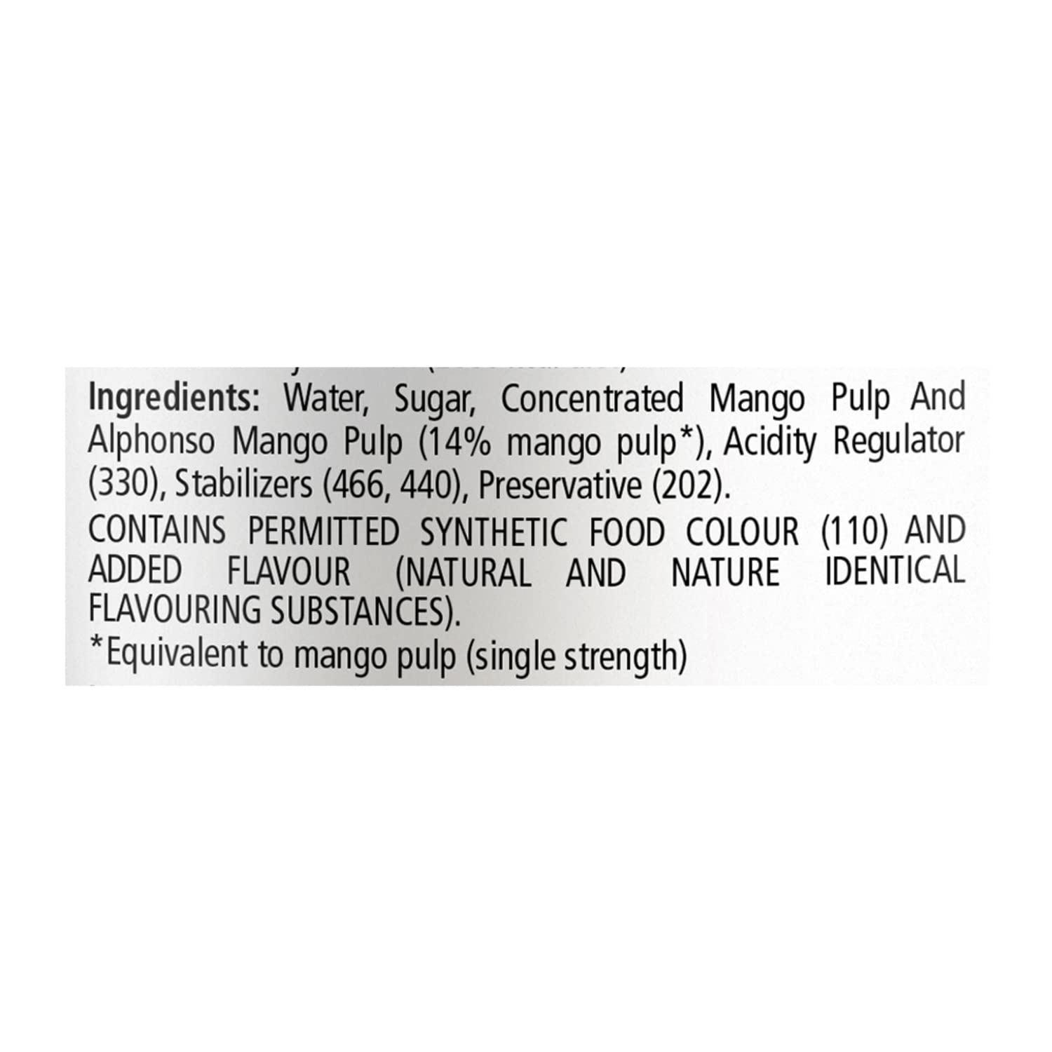 • Contains Mango and Alphonso Mango pulp: 13.6%